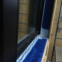 L’étanchéité à l’air entre la fenêtre et le mur a été réalisé avec une combinaison d’un ruban adhésif spécial (SIGA Wigluv) et de rouleau de mousse à expansion (HannoBand). La mousse épouse parfaitement les 2 parois et exerce une pression assez important pour donner une parfaite étanchéité à l’air. Comme il faisait froid, la mousse avait une expansion très lente, ce qui m’a un peu inquiété au début. Mais après 3 à 4 jours, c’était parfait.