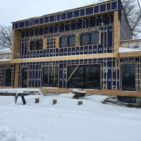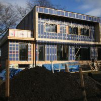 Si vous êtes arrivé à lire jusqu’à la fin mon article précédent concernant les fenêtres Passivhaus, vous savez pourquoi nous avons investi dans un tel matériel. Au départ nous voulions du matériel local, j’entend par là Québecois, ou Canadien. Mais en mettant ensemble nos envies (du bois à l’intérieur et du durable à l’extérieur (Aluminium)) et les exigences Passivhaus pour notre climat québécois, on a du se tourner vers des fenêtres Européennes (Autrichiennes (Optiwin)). La commande finale a été passée une fois les ouvertures définitives dans les murs faites, c’est a dire en septembre. La livraison était donc prévue fin novembre. Au final c’est arrivé avec 2 semaines de retard. Mais il nous ont aussi annoncé au dernier moment que Richard n’avait pas le droit de les installer avant que l’installateur certifié soit là sous peine de perdre la garantie. Mais cet installateur (venant d’Autriche) est arrivé une semaine après les fenêtres. C’est donc 3 semaines que nous avons perdu.
