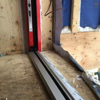 Autre surprise, cette fameuse porte coulissante n’a pas de poignée extérieur et est conçue de telle sorte qu’il n’y a aucune prise permettant de ré-ouvrir la porte de l’extérieur une fois fermée. Cela impose de la laisser entre-ouverte ce qui n’est pas vraiment très économe en énergie, surtout quand il fait -15 dehors. J’envisage d’acheter une poignée à ventouse amovible pour régler ce problème, mais nous sommes un peu déçu de ce détail car cette porte va être un lieu de passage important. Il est quasiment certain que si nous avions eu connaissance de ce détail, nous aurions réfléchi quand à l’achat de cette porte en particulier.