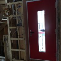 Il fait maintenant en permanence au dessus de 20°C dans la maison, c’est très agréable, en particulier pour le travail des ouvriers. C’est assez impressionnant de ne sentir aucune fraicheur sur la vitre alors qu’il fait -15 dehors. Il fait assez humide encore dedans car le système de ventilation n’est pas fonctionnel. Il y a du coup un peu de condensation qui se forme dans le coin des vitres (qui est la zone la plus faible). Ceci sera réglé une fois tout en place.